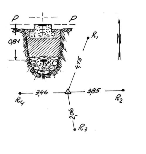 Segnale sul cocuzzolo più alto del monte tondeggiante. Centrino di fondo e di superficie. Riferimenti: come da pianta.