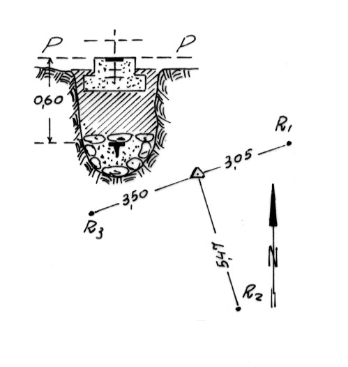 | Materializzazione | Segnale sull'altura a sud sud-est di Podargoni. Centrino di fondo e di superficie. Riferimenti: come da pianta. |