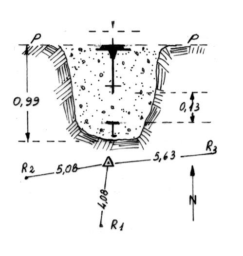Segnale sulla sommità del monte. Centrini di fondo e di superficie in blocco di calcestruzzo. Riferimenti: come da pianta.