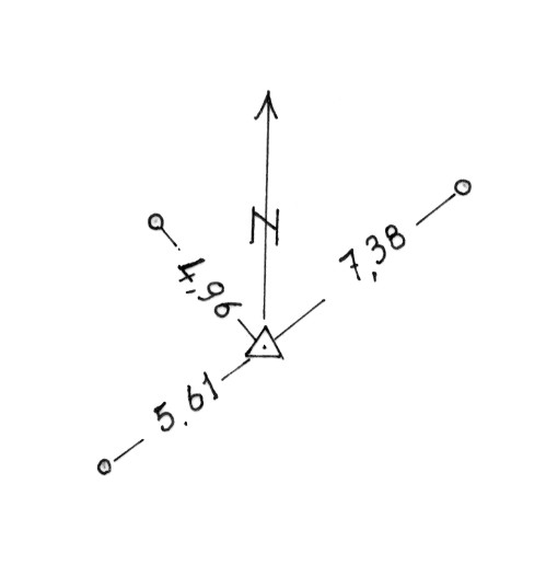 Segnale sulla cima del monte. Pilastrino di pietrame con foro riempito di piombo. Asse geometrico del pilastrino. Riferimenti: 3 centrini metallici nella posizione come da pianta.
