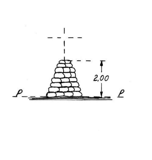 Segnale all'estremo nord di uno sprone. Croce incisa su pietra interrata con sovrastante pilastro di pietrame. Asse geometrico del pilastro.