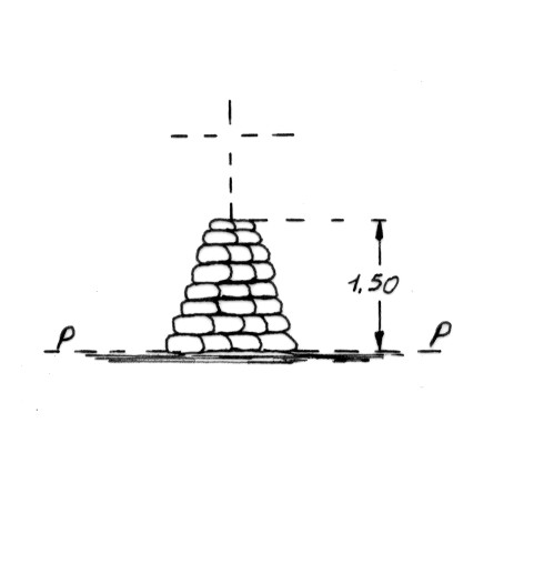 Segnale sulla punta sud della cresta rocciosa più elevata. Pilastro di pietrame. Asse geometrico del pilastro.