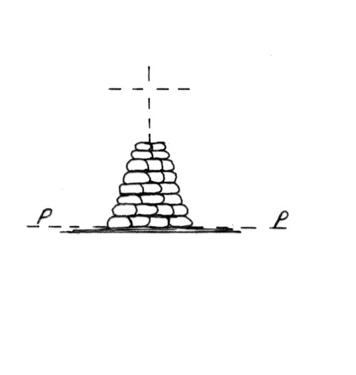 Segnale sulla cima del monte. Pilastrino di pietrame. Asse geometrico del pilastro.