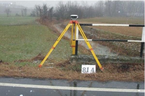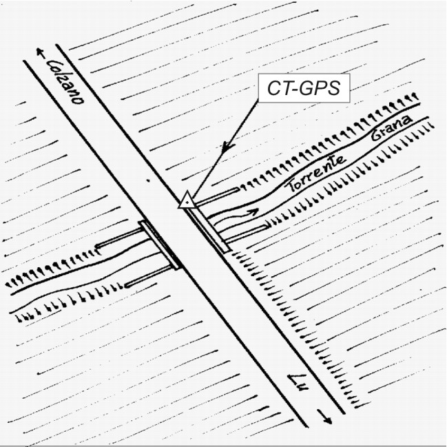 Centrino metallico infisso sul cordolo lato valle del ponte sul torrente Grana.