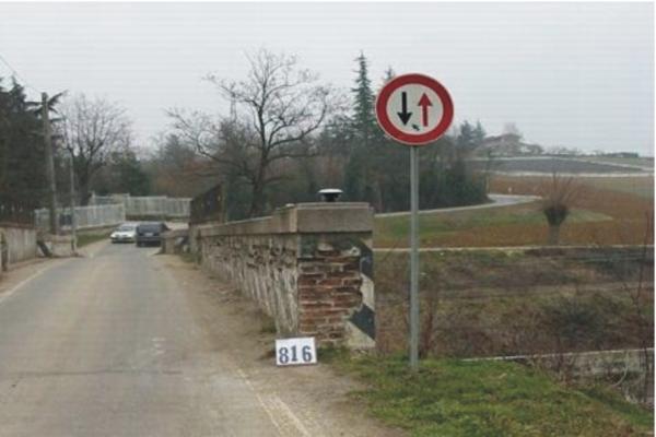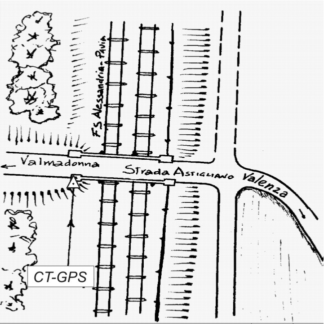 Centrino metallico infisso sulla sommità del parapetto del ponte sulla ferrovia Pavia-Alessandria.