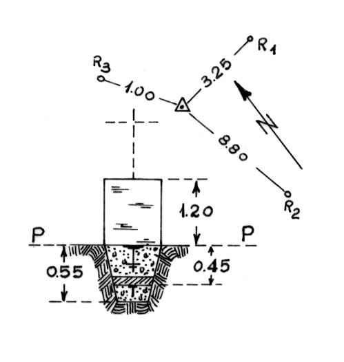 | Materializzazione | Segnale sulla cima del monte. Centrini di fondo e di superficie in un blocco di calcestruzzo con sovrastante pilastrino. Riferimenti: tre centrini, di cui R2 in- terrato e R1 e R3 su massi. |