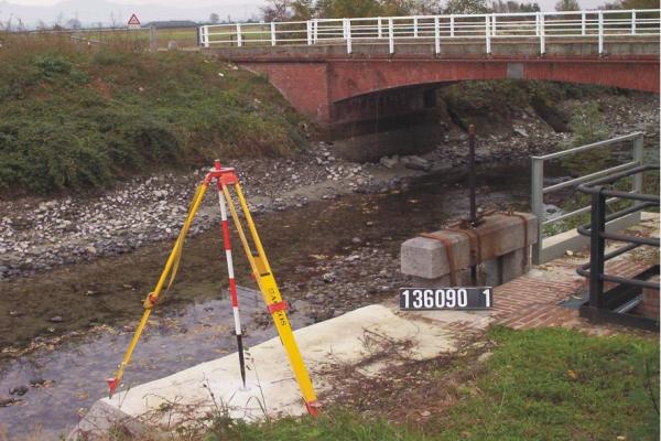 | materializzazione | Centrino metallico posto su un manufatto in calcestruzzo aderente alla chiusa, a fianco del ponte. |