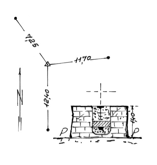 | Materializzazione | Segnale sulla sommità del monte. Pilastro di pietrame con centrino di fondo e di superficie. Riferimenti: 3 centrini. |
