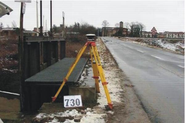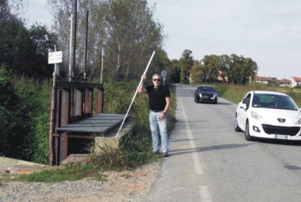 | materializzazione | Centrino metallico infisso sul cordolo in calcestruzzo del ponte-chiusa sul canale. |