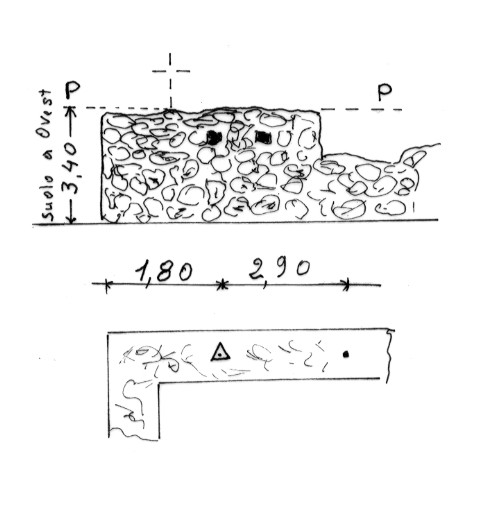 | Materializzazione | Centrino metallico cementato sul muro più alto dei ruderi di un antico castello,a m 1,80 dallo spigolo Sud. Riferimenti: Un centrino metallico cementato sul muro. |
