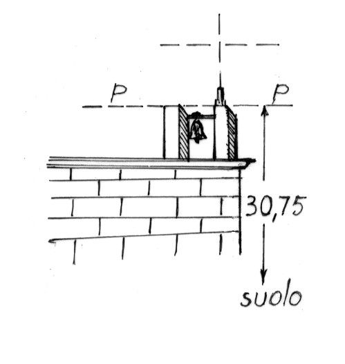 Segnale costituito da pilastrino sopra uno dei pilastri del campaniletto della chiesa. Asse geometrico del pilastrino.