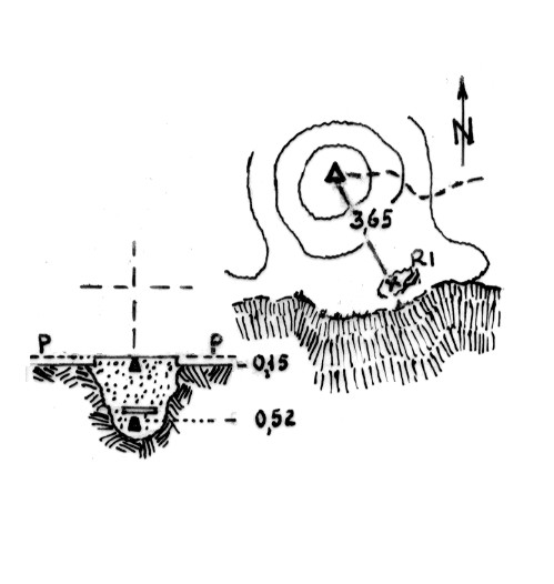 | Materializzazione | Segnale sul punto più alto del monte. Centrini tronco-conici in superficie ed in profondità. Riferimenti:croce incisa sulla unica roccia fissa esistente sulla vetta. |