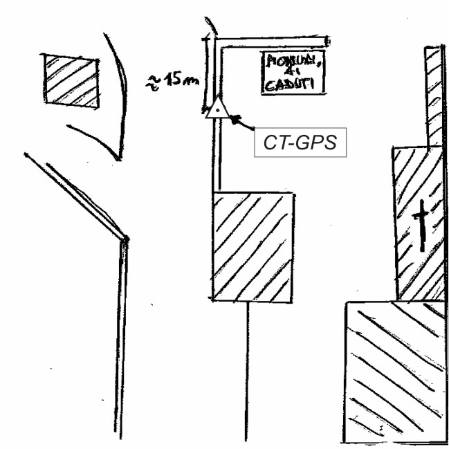| materializzazione | Centrino metallico posto su un muro di pietra del piazzale antistante la chiesa. |
