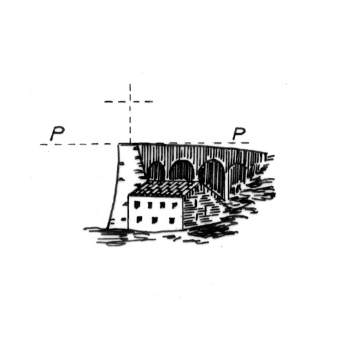 | Materializzazione | Fabbricato, già adibito a mulino, situato su di un poggio. (Il centro pur non essendo specificato, si può ritenere, secondo quanto risulta dal prospettino come l'asse del condotto dell'acqua) |