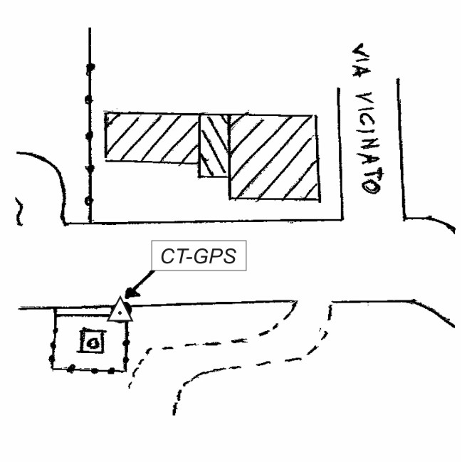 | materializzazione | Centrino metallico posto su un muro in calcestruzzo di reggispinta, a 50 metri dall'incrocio per Via Vicinato. |