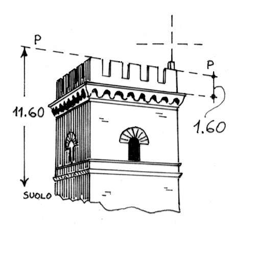 Centrino metallico cementato al centro del merlo spigolo nord-ovest della torre omonima con sovrastante pilastrino.