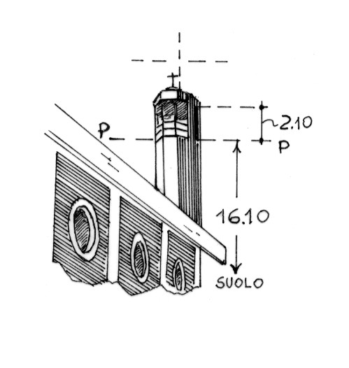 Campanile della chiesa. Asse geometrico del campanile.
