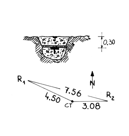 | Materializzazione | Segnale sulla sommità dell'altura. Centrini di fondo e di superficie invertiti e cementati in blocchi di calcestruzzo. Riferimenti: 2 centrini metallici cementati in rocce affioranti. |