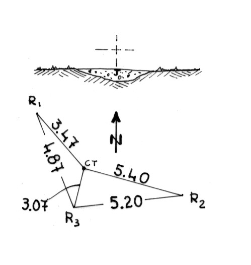 Segnale sulla sommità del monte. Centrino metallico cementato in roccia. Riferimenti: 3 centrini metallici cementati in rocce affioranti.