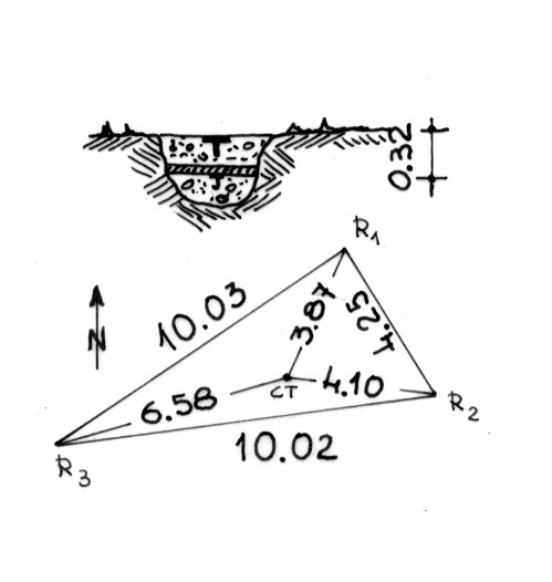 Segnale sulla sommità del monte. Centrini di fondo e di superficie cementati in blocchi di calcestruzzo. Riferimenti: 3 centrini metallici cementati in rocce affioranti.