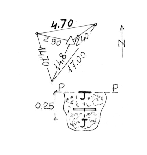 | Materializzazione | Centrini di fondo e di superficie in gettata di calcestruzzo. Riferimenti: 3 centrini metallici cementati su roccia. |