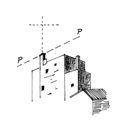Fumaiolo sulla parte più alta della torre. Asse geometrico del fumaiolo.
