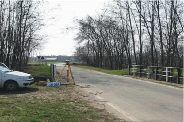 | materializzazione | Centrino metallico infisso sulla soletta, lato valle, del ponticello sulla Roggia Busca. |