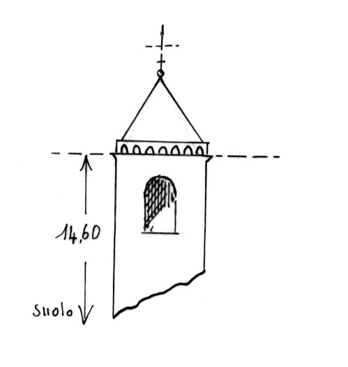 | Materializzazione | Campanile della chiesa in contrada Scauri, sopra un pianoro. Asse geometrico del campanile. |
