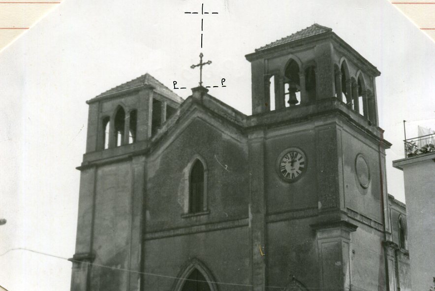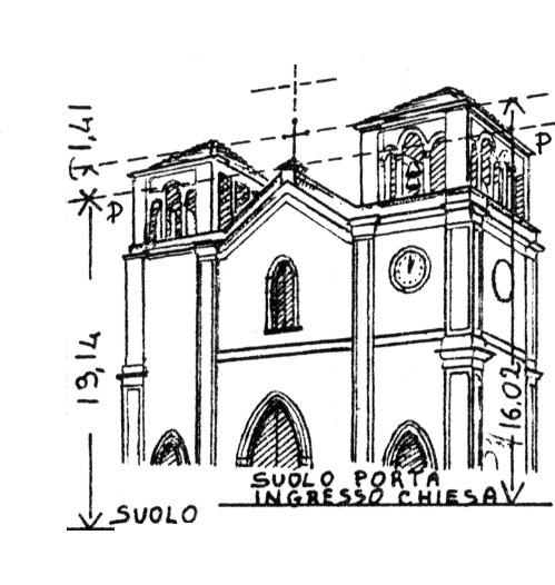 Croce sul frontone della chiesa di San Nicola. Asse geometrico della croce.
