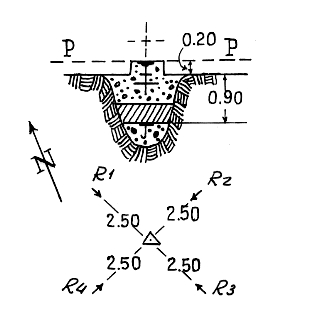 Segnale sulla sommità del monte. Centrini di superficie e di fondo. Riferimenti: Quattro frecce.