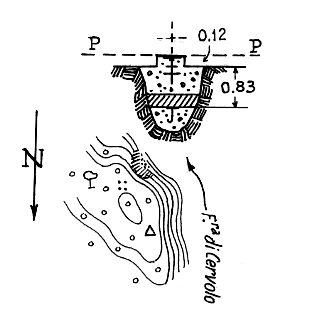 Segnale sul costone che divide le fiumare Canoncelli e Ceravolo. Centrini di superficie e di fondo.