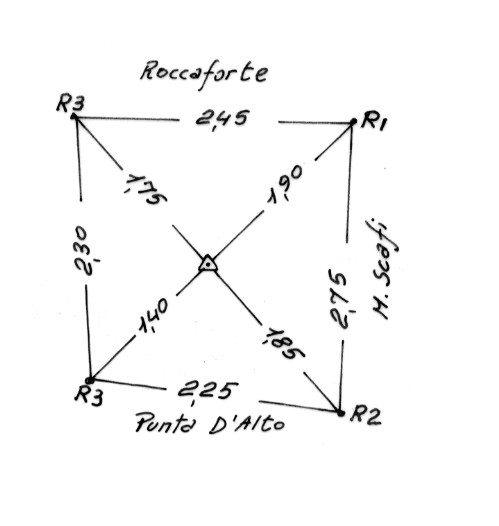 Segnale sulla punta più elevata del terreno roccioso al centro del paese. Centrino di superficie. Riferimenti: come da pianta.