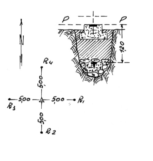 | Materializzazione | Segnale in località omonima a sud-est del capoluogo. Centrino di fondo e di superficie. Riferimenti: 4 centrini affioranti da pozzetti di calcestruzzo. |