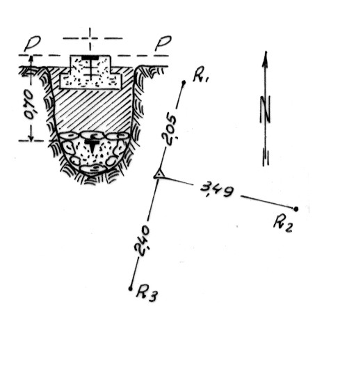 | Materializzazione | Segnale sulla cima del monte. Centrino di fondo e di superficie. Riferimenti: come da pianta. |