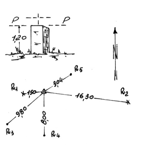 | Materializzazione | Segnale, costituito da pilastrino, sul pianoro a sud-est di Sant'Angelo in regione Tenuta. Asse geometrico del pilastrino materializzato da un centrino di superficie. Riferimenti: R1, R2 croci incise su roccia; R3, R4, R5 centrini. |