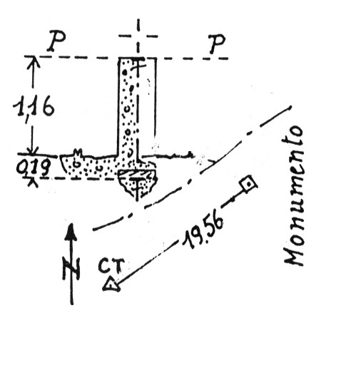 | Materializzazione | Segnale sul monte a circa m. 20 a S.O. della statua del Redentore. Pilastrino in calcestruzzo con centrino alla sommità e sotto la base, coassiali. Riferimenti: asse statua con DN= +11,64 e DE = + 15,72. |