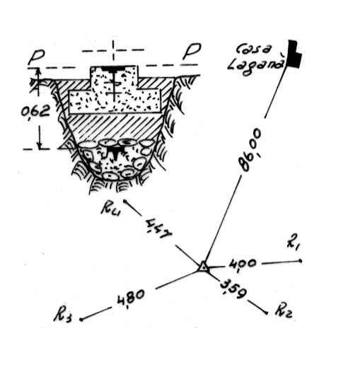 Segnale sul cocuzzolo ad est del capoluogo presso la rotabile S. Stefano-Gambarie. Centrino di fondo e di superficie. Riferimenti: 4 centrini.