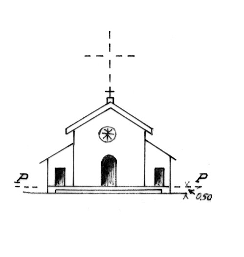 | Materializzazione | Pilastrino sormontato da una croce, sulla facciata della chiesa. Asse geometrico del pilastrino. |