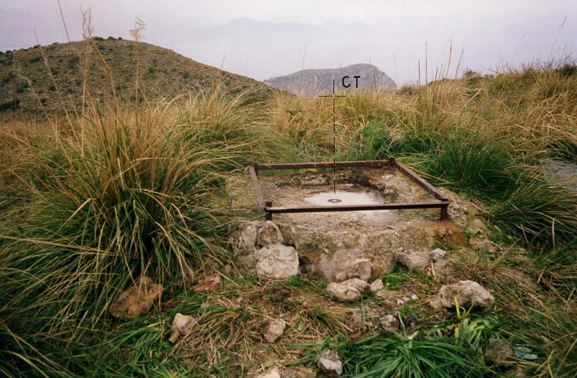 | Materializzazione | Sulla sommità del monte omonimo. Centrino di superficie cementato al centro di una platea in cemento.Sottostante ulteriore centrino di superficie e ancora centrino di fondo. Riferimenti:tre centrini metallici cementati su roccie affioranti dal terreno. |