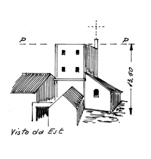 Segnale sull'edificio. Pilastrino in muratura posto sullo spigolo della torre.
