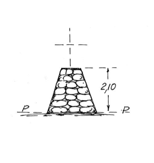 | Materializzazione | Segnale sul monte. Pilastro tronco-piramidale di pietrame a secco. Asse geometrico del pilastrino. |