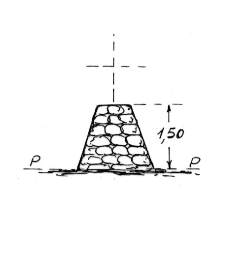 | Materializzazione | Segnale sulla sommità del monte. Pilastrino tronco piramidale di pietrame a secco. Asse geometrico del pilastrino. |