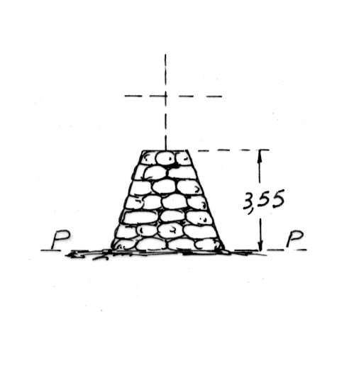 Segnale sulla sommità del monte. Pilastro tronco piramidale di pietrame a secco. Asse geometrico del pilastro.