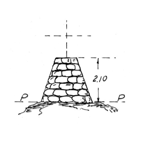 Segnale sul monte. Pilastrino tronco-piramidale in pietrame. Asse geometrico del pilastro.