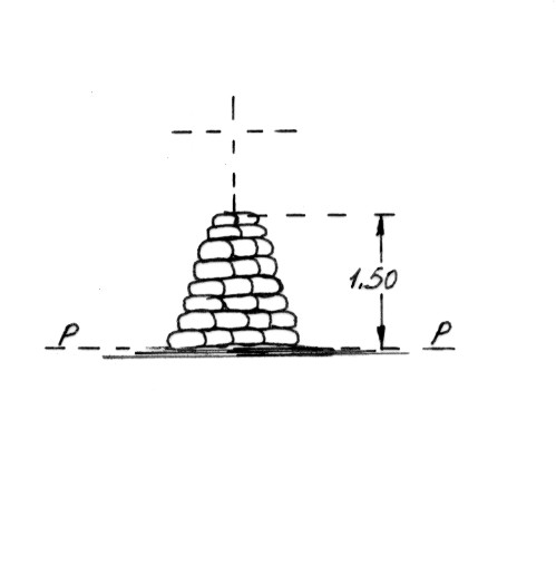 Segnale sulla sommità dell'altura facente parte del monte Pecoraro. Pilastrimo di pietrame. Asse geometrico del pilastro.
