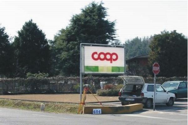 | materializzazione | Centrino metallico infisso sul muretto a lato dell'accesso al parcheggio del supermercato Coop. |
