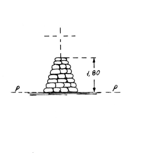 Segnale sulla sommità della serra. Pilastro di pietrame. Asse geometrico del pilastro.
