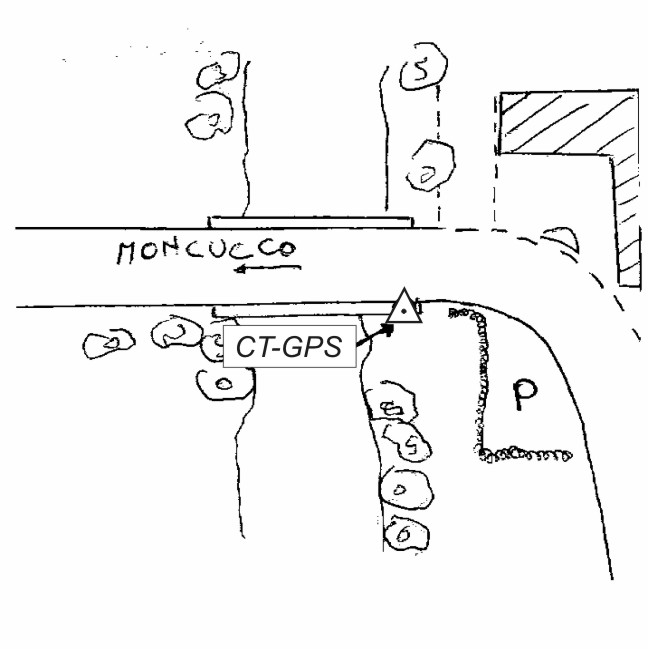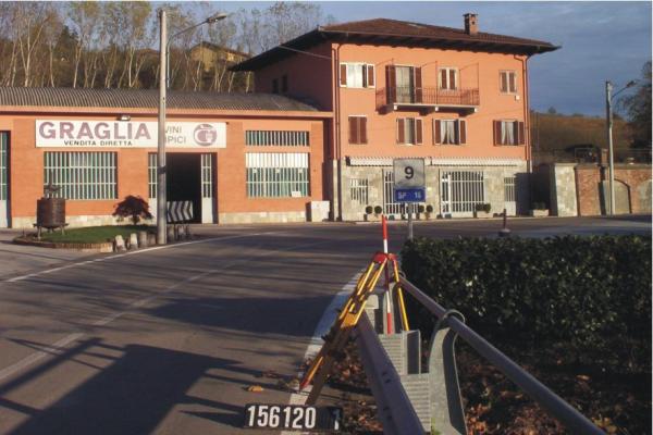 | materializzazione | Centrino metallico infisso su una spalletta di un ponte al km 9 della S.P. 16 a fianco dell'enoteca Graglia. |