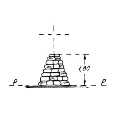 Segnale sui ruderi di un antico fabbricato. Pilastro in pietrame. Asse geometrico del pilastro.