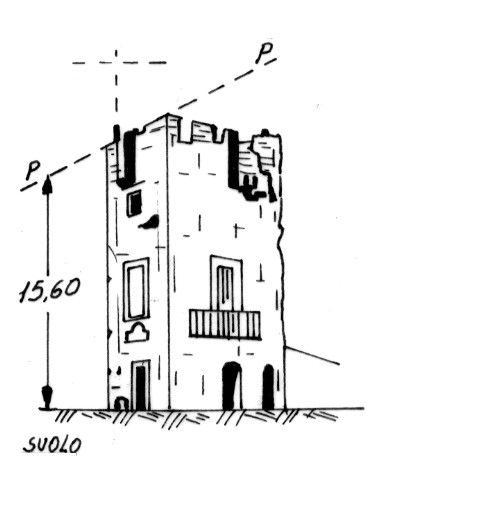 | Materializzazione | Segnale sulla volta della scala, nella parte più elevata della torre del castello. Pilastrino in muratura. Asse geometrico del pilastrino. |